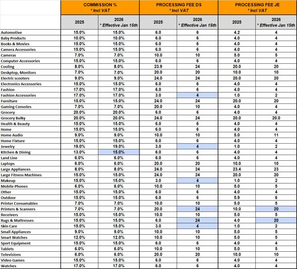 JUMIA Selling Fee Structure